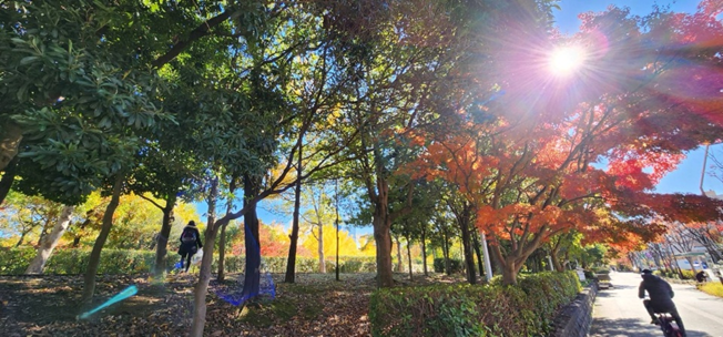 During the clean-up, we carefully collected fallen leaves and trash, contributing to a pleasant environment for park visitors.