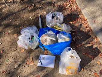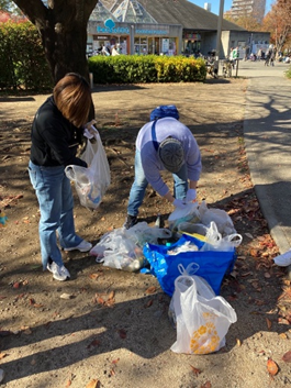 During the clean-up, we carefully collected fallen leaves and trash, contributing to a pleasant environment for park visitors.